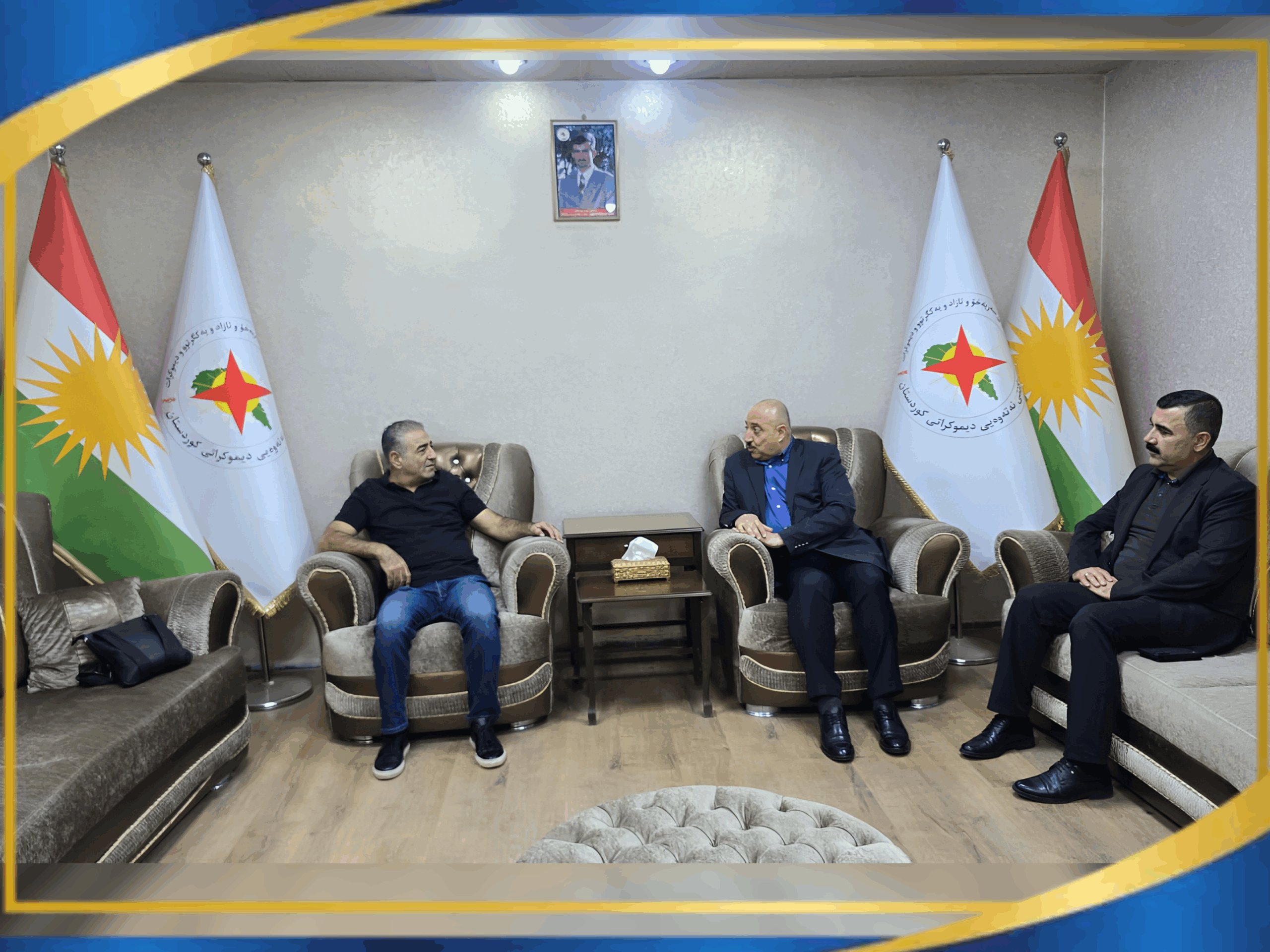 وكان في استقباله الأستاذ غفور مخموري، السكرتير العام للحزب، إلى جانب الأستاذ فاخر نانكلي، عضو اللجنة المركزية ومسؤول مكتب الحزب في هولير. وجاء اللقاء في أجواء ودية اتسمت بالحوار البنّاء، وتركّز الحديث حول آخر المستجدات في روچآڤا وشمال وشرق سوريا، والظروف السياسية والأمنية التي تمرّ بها المنطقة في ظل التهديدات الإقليمية المتزايدة، إضافة إلى بحث سبل توطيد العلاقات الكُردستانية وتعزيز التنسيق المشترك بين القوى الفاعلة على الساحتين السورية والكُردستانية.